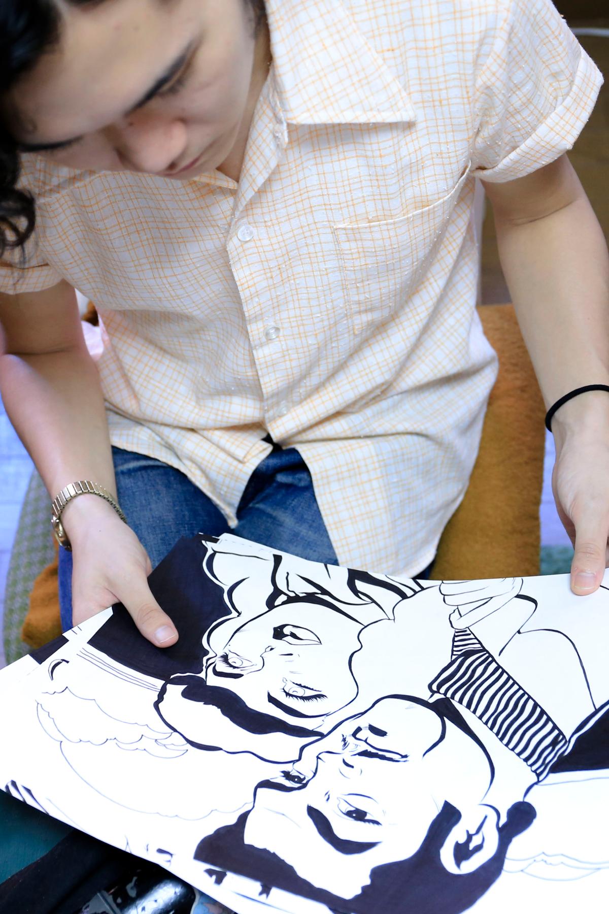 人種関係なく、この人面白いなみたいな、描きたいなと思って描きますね。アジアなりのクセ、むこうの人のクセもあるし。地元が立川で、横田基地が近かったんで、普通に近所に外国人もいたんですよね。アジアの人とか、ブラジルの人とか、いろんな人を見れたんで、環境が面白くて。割と下町っぽいというか、みんな育ちが良くないというか(笑)。そういう人が周りに一杯いたんで、面白かったですね、色んな人いるなっていう。